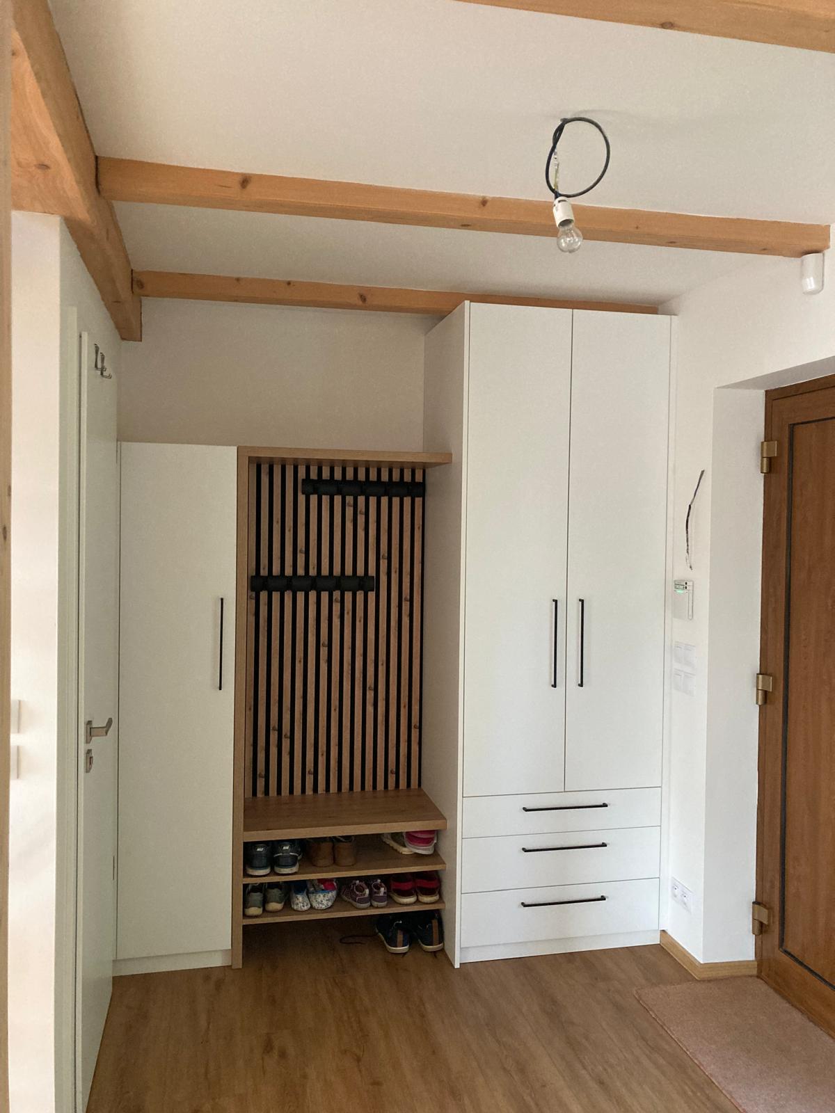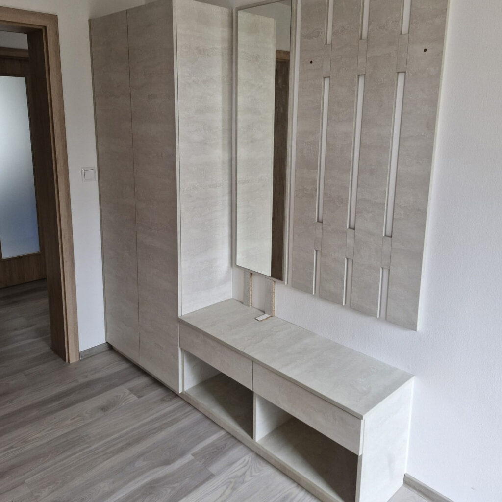 - vestavěné skříně a úložné systémy